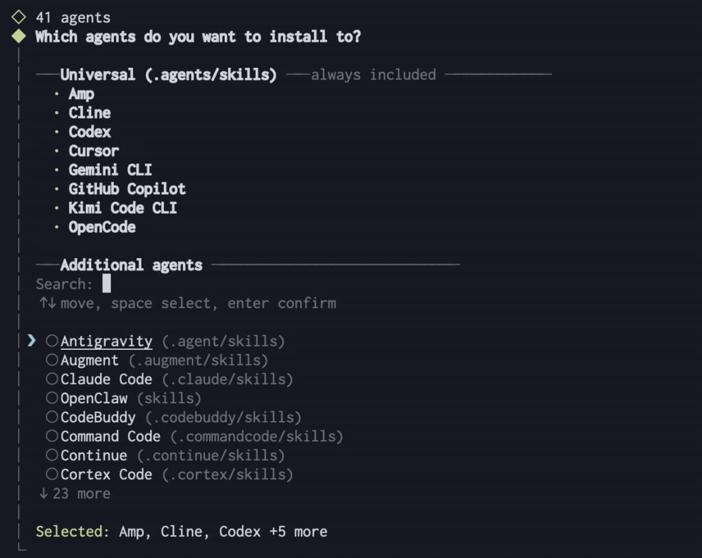 Global を選択した場合は ~/<agent>/skills/ にインストールされます。
