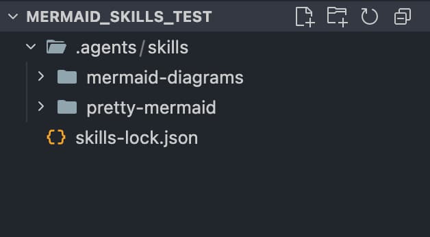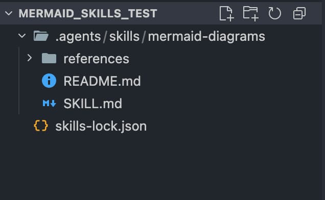 ./.agents/skills/ 配下に、mermaid-diagramsがインストールされていることが分かります。