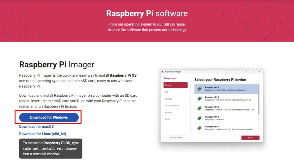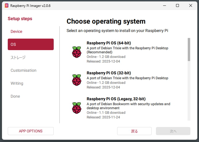 イメージの書き込みには公式のRaspberry Pi Imagerを利用します。