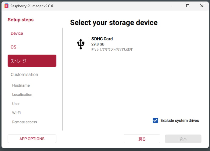 Raspberry Piで使用するmicroSDカードを選択して下さい。