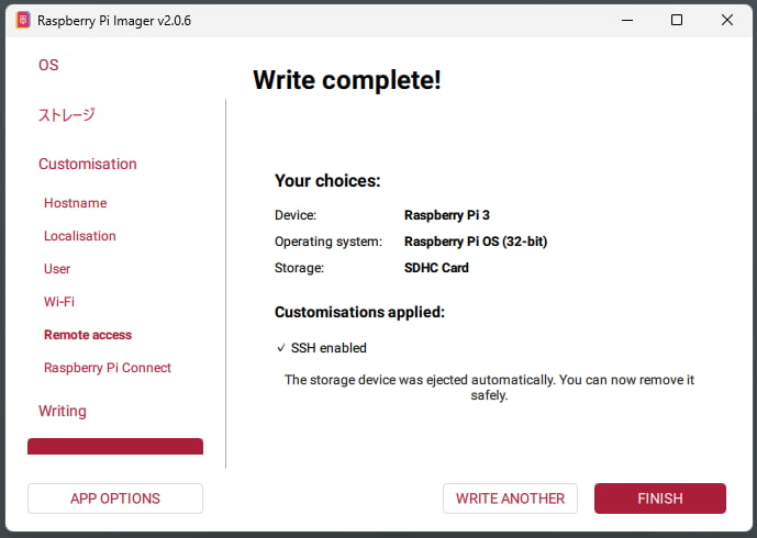 正常に書き込みが完了すればこの手順は終了です。
