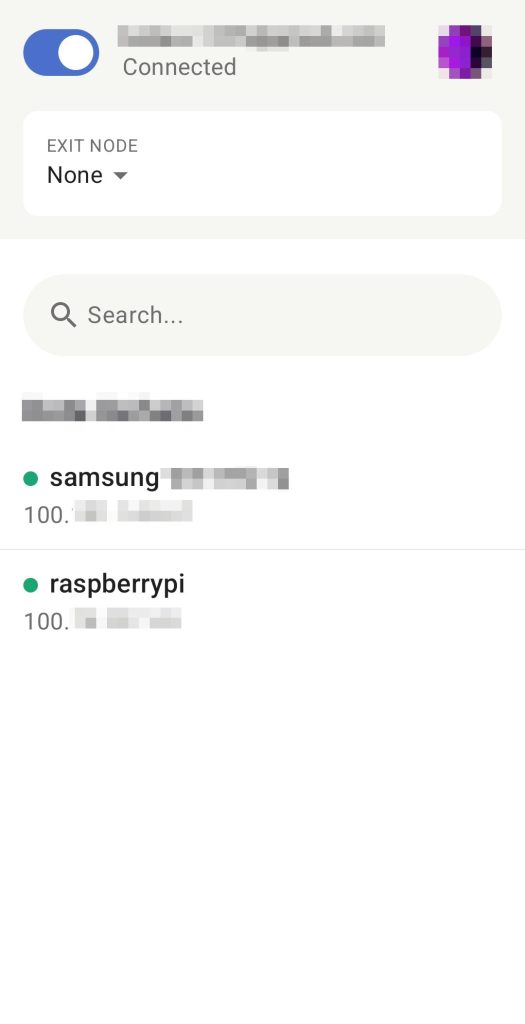Tailscaleのクライアントアプリを利用し、VPN接続を行います。(以下はAndroidデバイスでの接続例)
