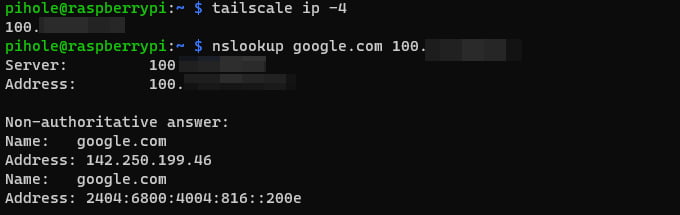$ nslookup google.com 100.x.x.x結果が返ってこれば成功です。