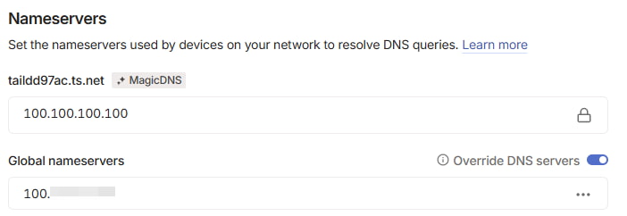 設定できたら、『Override DNS servers』のトグルも有効可しておきます。
